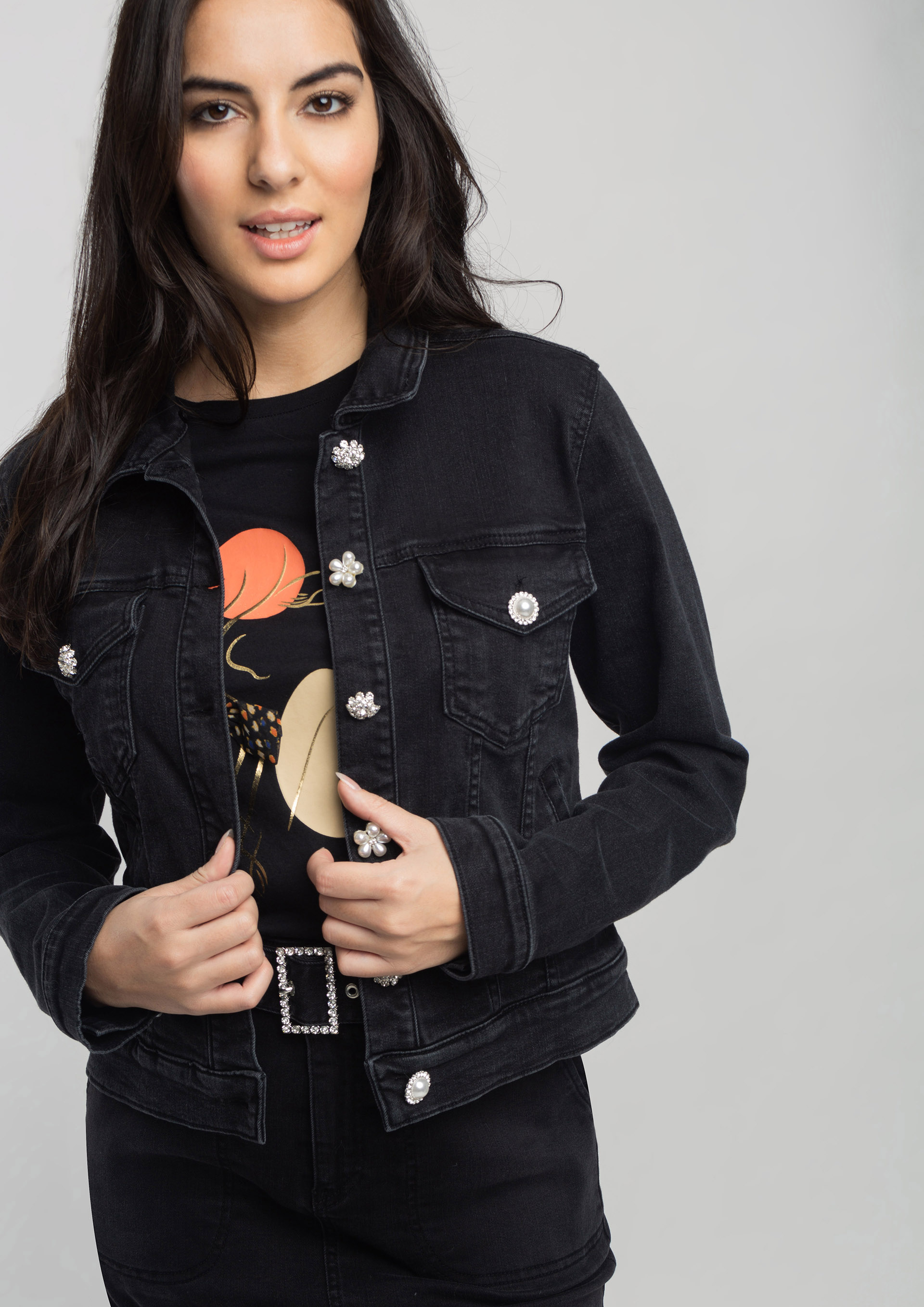 Denim jacket K Krizia Black denim jacket with iconic print Frame Black Denim Jacket frame denim & clothing outlet sale | shop the fashion brand founded by jens grede & erik tostensson for flattering jeans &. crafted from a frame sustainable denim made with recycled materials. Whether you prefer a cropped, oversized, or moto style, frame denim jackets elevate any look. shop frame denim jackets for women at net a porter,. Frame Black Denim Jacket.